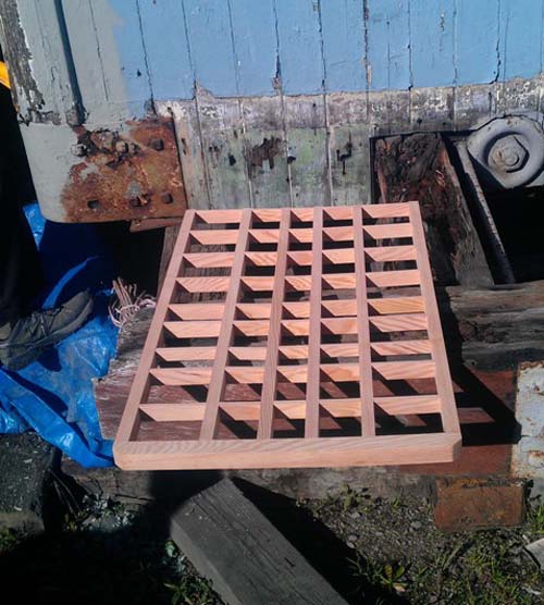 Research suggests it was constructed in 1892 for San Francisco and North Pacific (denoted as car #5), it may have been built in either Lakeville / Donahue Landing, near Petaluma, or in the Tiburon shops. We do know that the Northwestern Pacific acquired the 605 when the NWP bought the SF&NP. The 605 ran from Tiburon past Petaluma to Cloverdale and on to Eureka under the NWP flag. The car was retired in 1932 at which point it was reconfigured as a house in Alto (a subdivision in Mill Valley) and remained in this state for half a century. The NWP Historical Society acquired the car and moved it to the Petaluma Trolley Yard in August 2010. The car is currently undergoing restoration. Project director Scott Bowdish has made a scale model of one end of the car so we can figure out how to rebuild the missing ends. No construction plans for this car were found. The lower roof rafters and the door jamb on one side have been repaired or replaced. As the weather gets better rebuilding of the roof will commence. The car’s interior had been sandblasted and the roof rafters (carlines), are not salvagable and will be replaced. We will also be replacing the roof sheathing and clerestory windows.