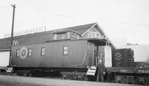 Research indicates that the history of P&SR No. 1 started in the Sacramento Shops of the Central Pacific in 1899 when the caboose was first built. The construction drawings that the Society has obtained for a CS-15 style caboose match. We found SP No. 272 on one end and on the frame of the caboose. Records indicate that SP No. 272 was retired in 1932, later reconditioned and sent to SP subsidiary P&SR as their first No. 1 in 1934. The NWPRRHS has pictures of the caboose in service dated from early 1939 through the 1940s. It was retired and taken off the property in January of 1958.