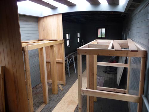 Upon arrival in Petaluma the NWPRRHS began the process of determining what needed to be done to rehabilitate the caboose. Reconstruction began in April of 2005 with a lot of demolition and removal of many rotten wood parts. What we have today is the result of some 2,500 hours of volunteer time and a considerable amount of donated money.